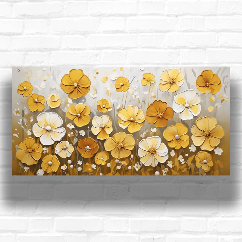Abstract Yellow Flowers Paint by Numbers – Very Large Panoramic Canvas for Home Decor