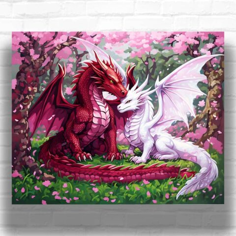 This artwork of Dragons Love – paint by numbers kit show a fantastical scene with two mythical creatures. See more amazing anime paintings in our the best collection of anime paint by number kits.