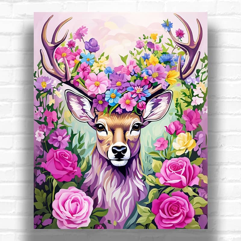 Fairy Forest Deer Paint by Number Kit – Fantasy Floral Deer Head Art for Wall Decor