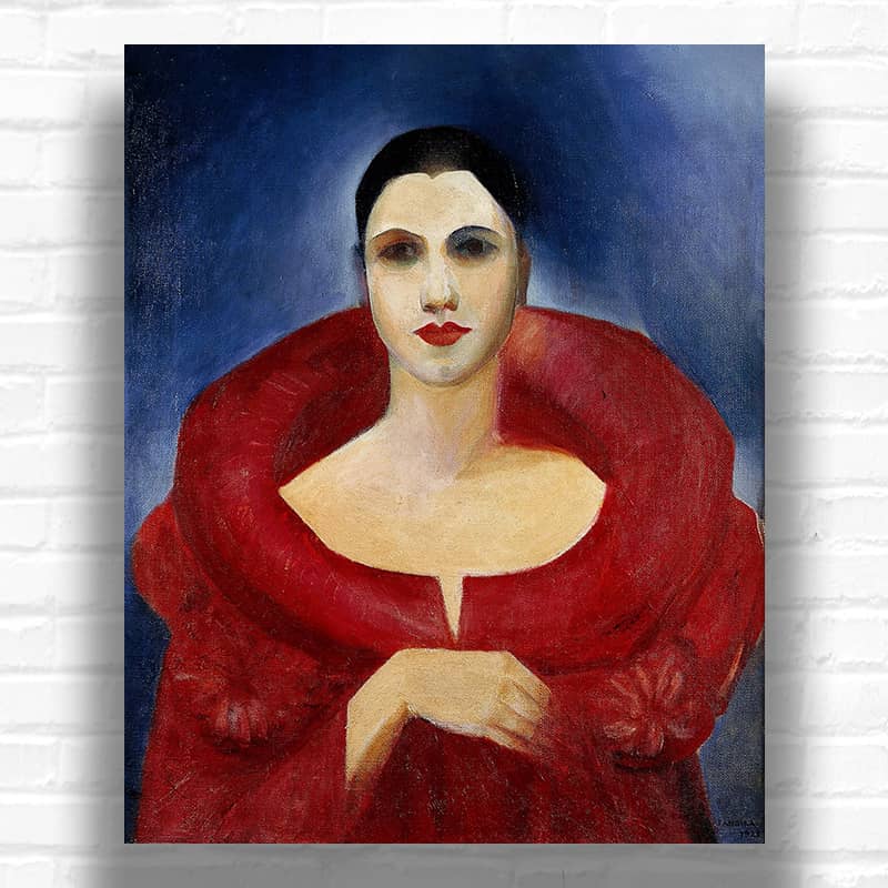 Self-Portrait by Tarsila do Amaral 1923 presents a modernist portrait defined by restraint, color, and intention. The Brazilian artist reduces the figure to calm planes and deliberate symmetry. Expression is measured, not dramatic. Color carries weight. This famous artwork stands between Art Deco portrait logic and modern art painting instincts, balancing decorative art with serious artistic expression. The canvas painting feels personal, almost closed off, yet physical, tactile, human.