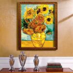 The sunflowers show all steps from full bloom to fading, meaning the life cycle and van Gogh’s love for light and color. Each flower stands out with its own look and feel, making this top painting paint by numbers scene a joy to do.