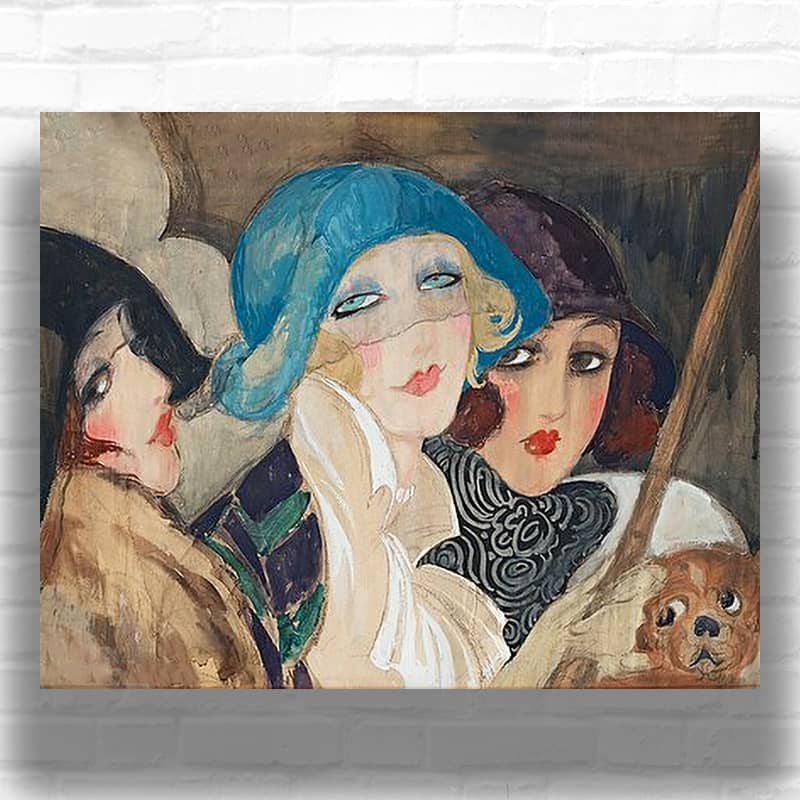 At that time, Art Deco was shaping fashion, illustration, and fine art with its controlled lines and stylized figures. This artwork shows not only three women, but also a new era that redefined elegance and individuality.
