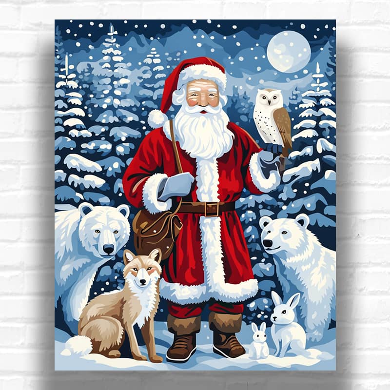Woodland Santa with Animals Paint by Numbers Kit – Santa with Winter Wildlife Art